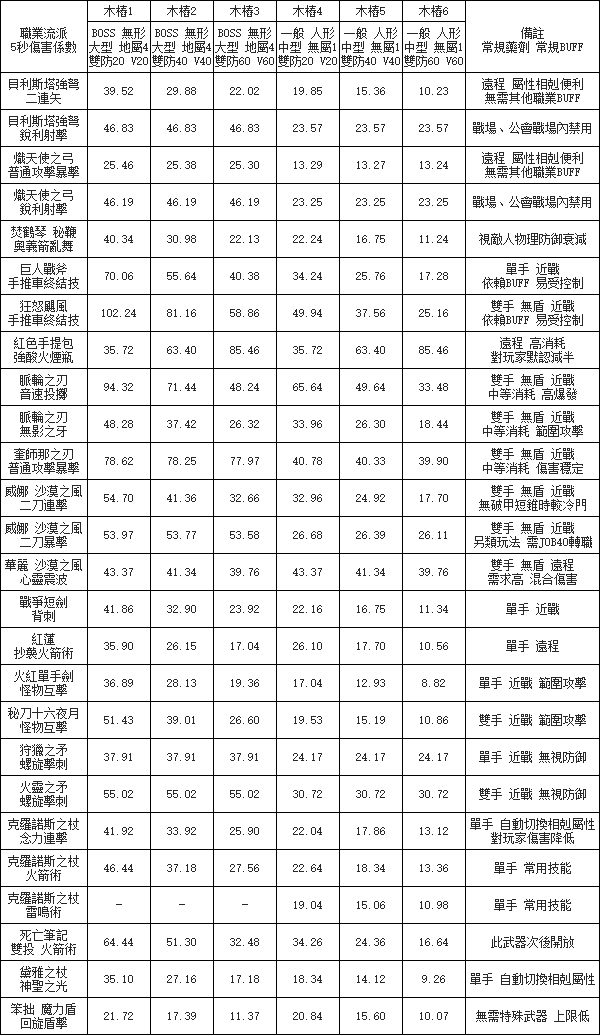 各職業流派傷害係數 (2月27日前版本,後續可能有調整)