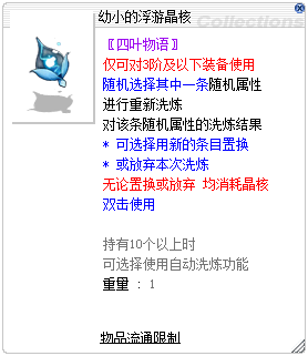 - 可使用相应的浮游晶核来进行单条属性的洗炼置换