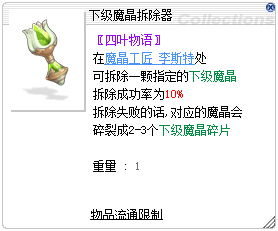 - 镶嵌的魔晶拆除需要相应等级的魔晶拆除器,有几率完整拆除