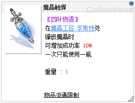 - 中级魔晶镶嵌在精炼值8或以上的装备上时有额外追加
