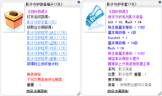 * 注:影子守护铠甲每个职业不同,此处不再列出